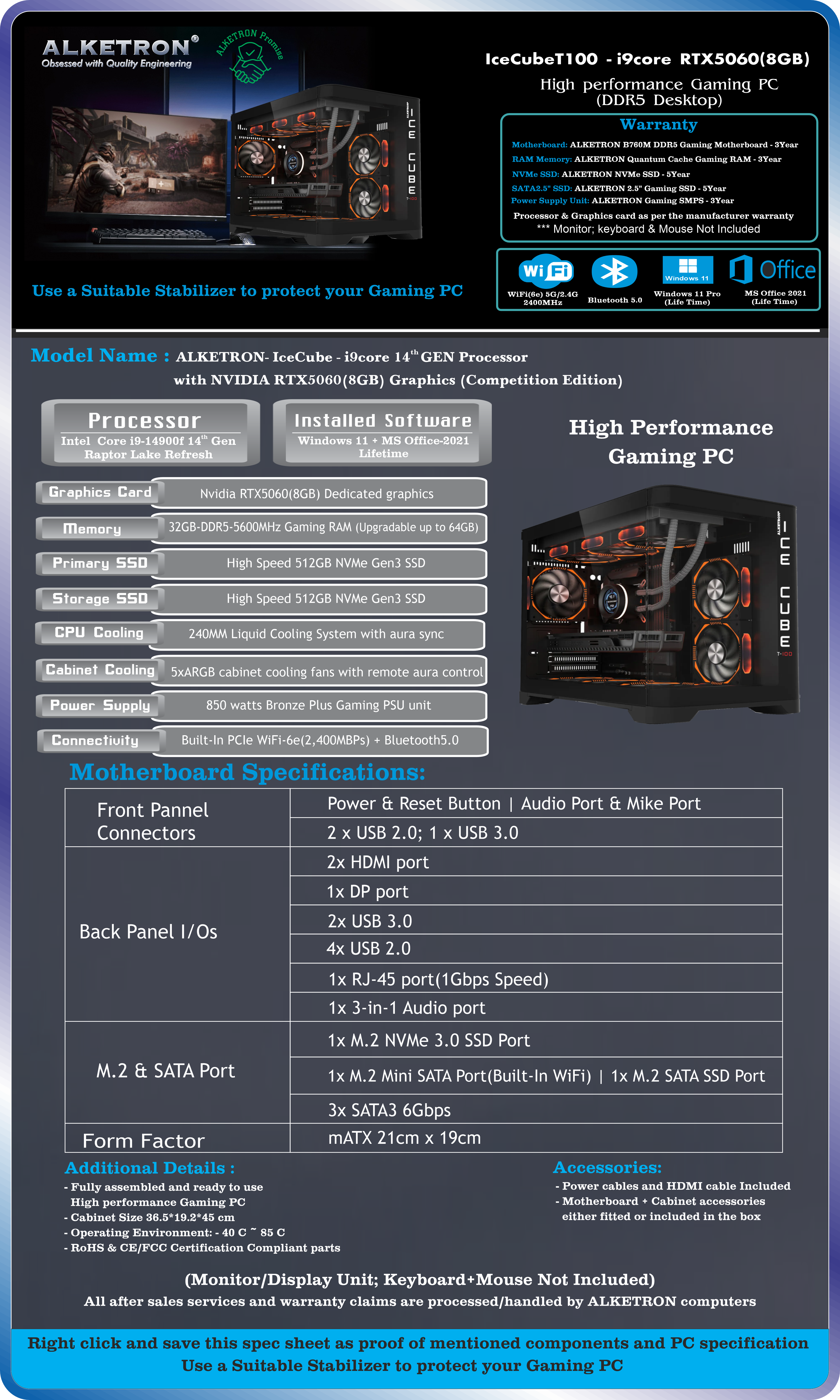 IceCube T100 - i9 core 14th GEN(RTX5060 -8GB)