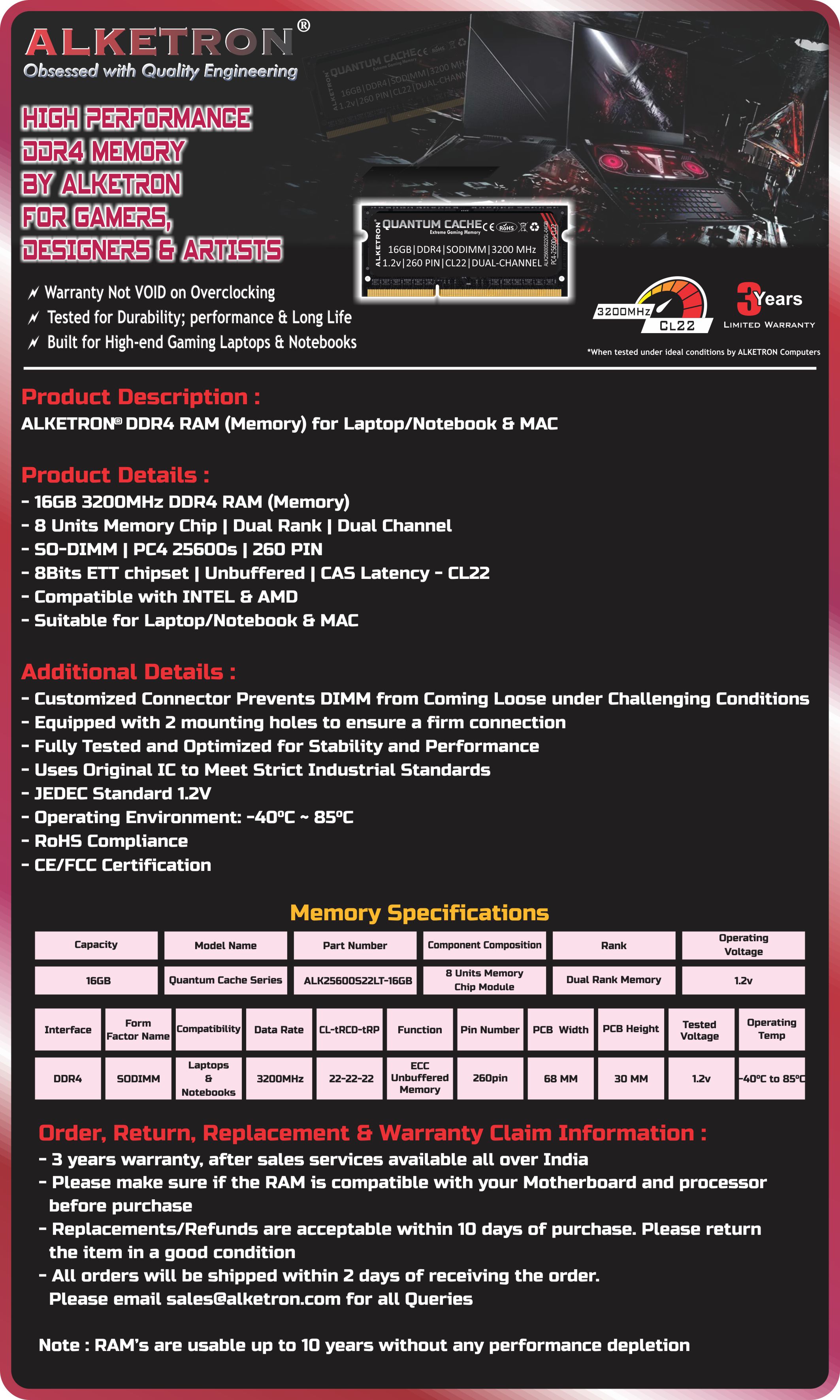 16GB DDR4 RAM Laptop - ALKETRON Quantum Cache Gaming Series