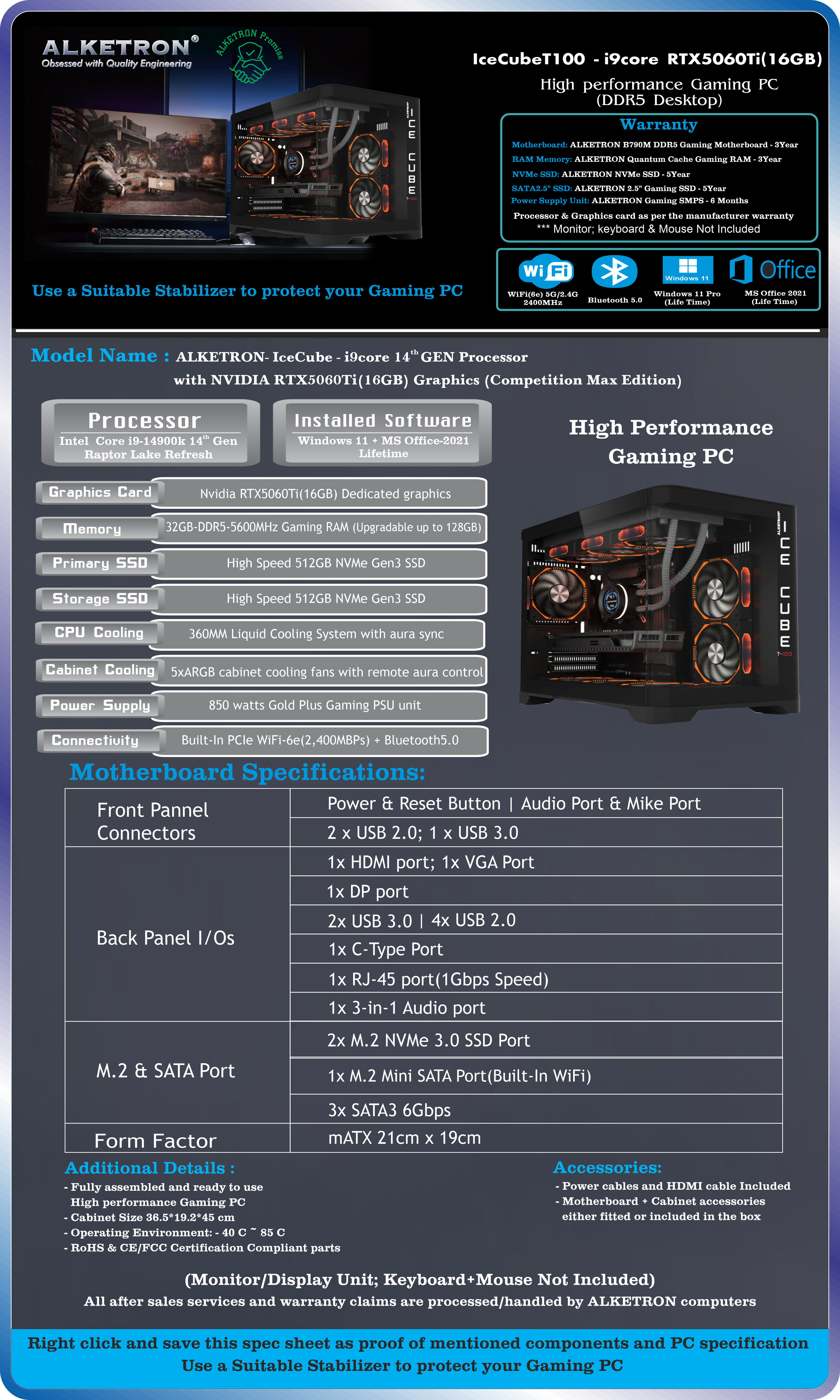IceCube T100 - i9 core 14th GEN(RTX5060Ti-16GB)