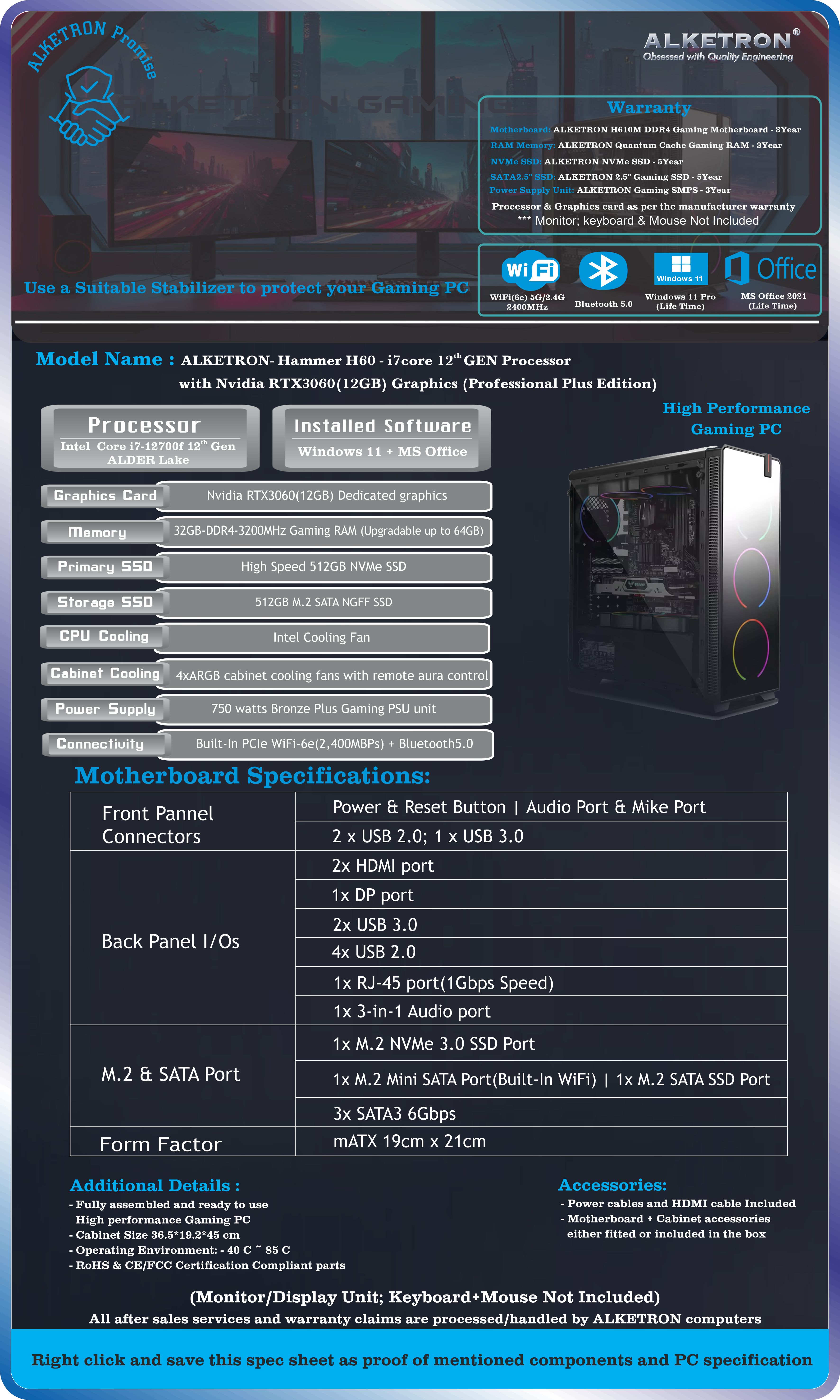 Hammer H60 - i7 core 12th GEN(RTX3060-12GB)