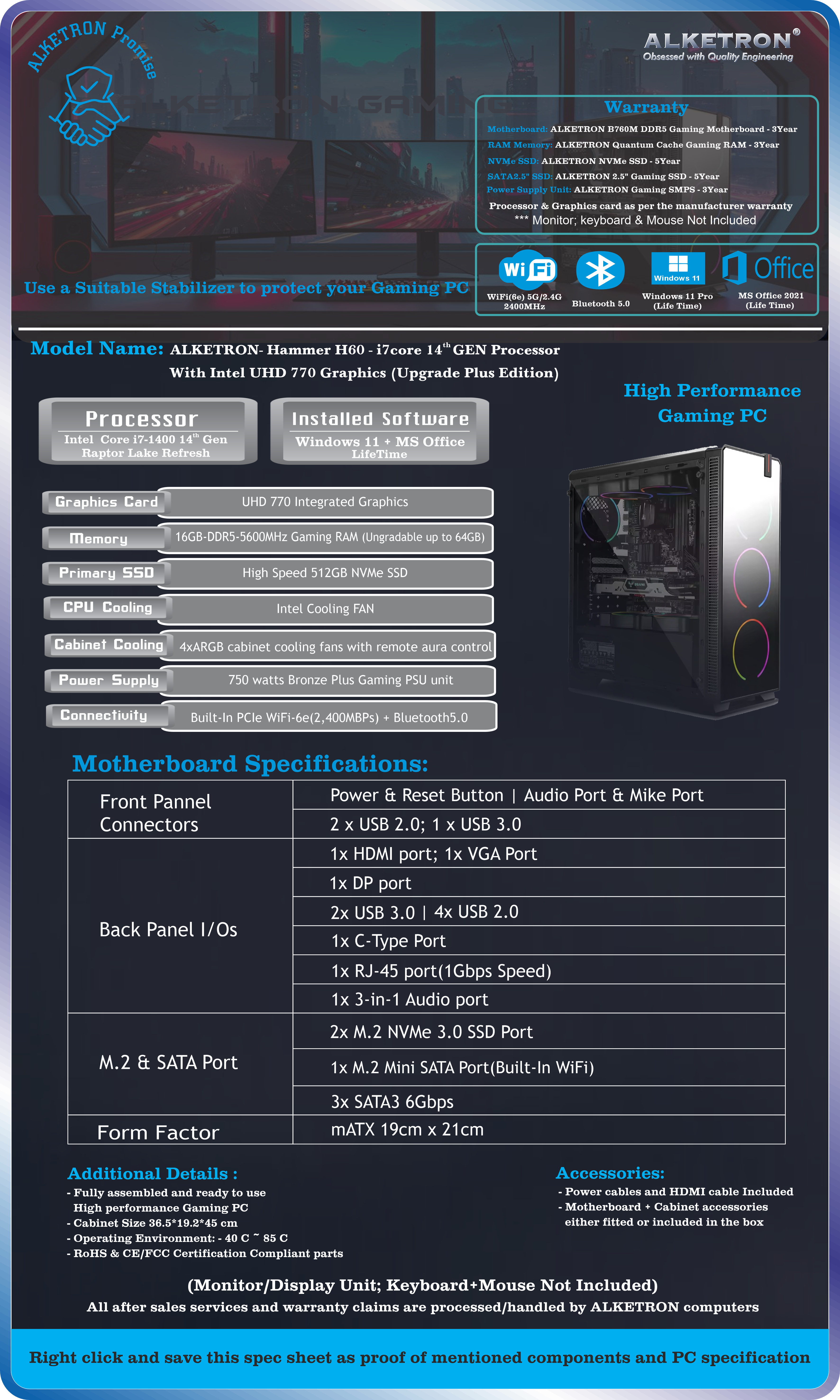 Hammer H60 - i7 core 14th GEN(UHD 730)