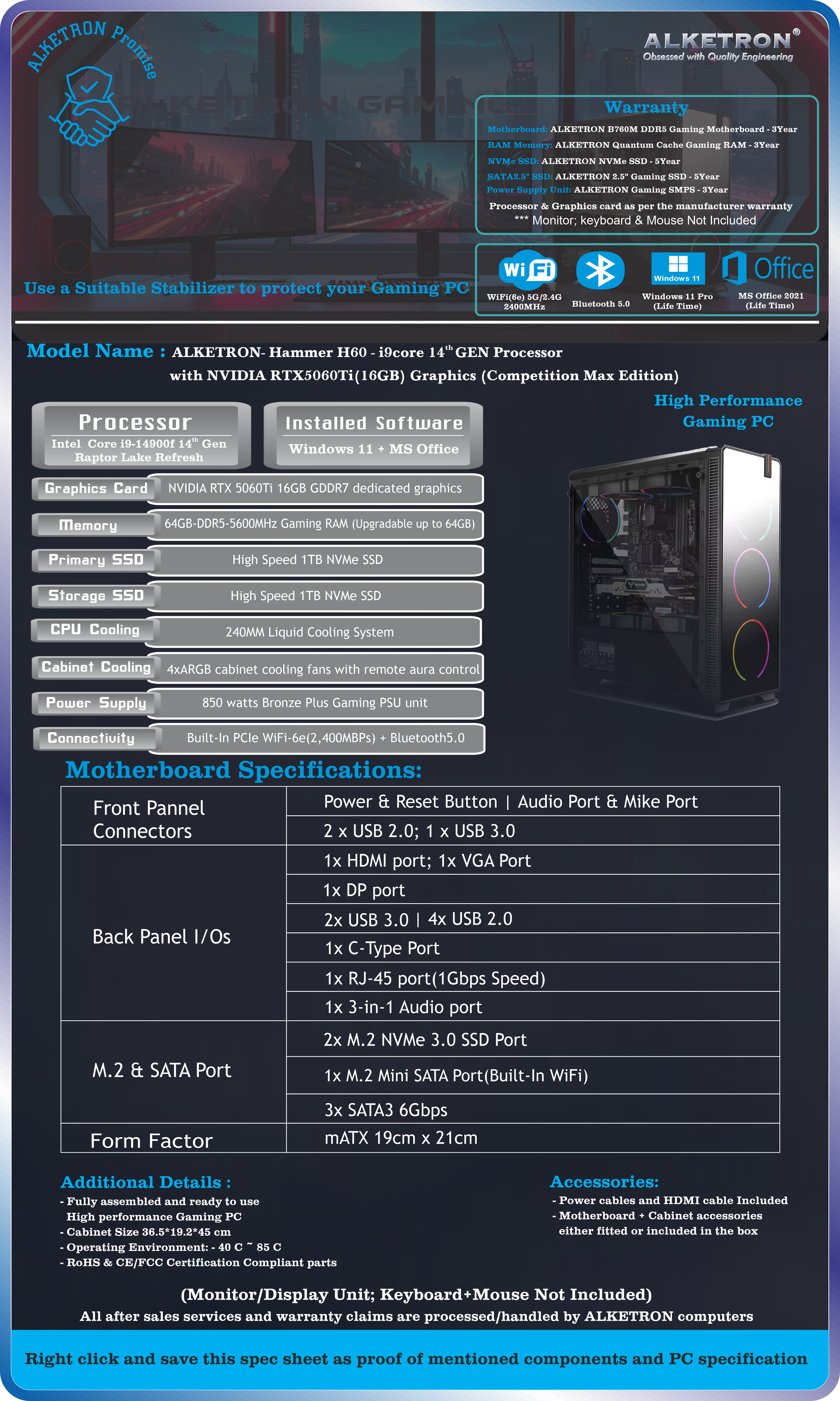 Hammer H60 - i9 core 14th GEN(RTX5060Ti-16GB)